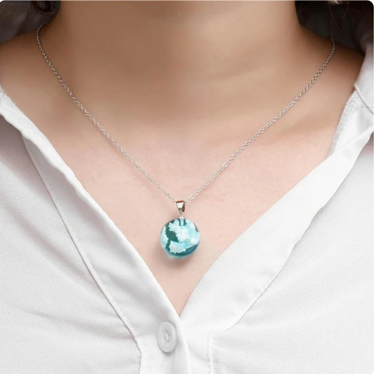 Este colgante está diseñado para ayudarte a despejar la mente y relajar el cuerpo. Es un recordatorio constante de que siempre puedes encontrar paz y serenidad bajo un cielo azul.